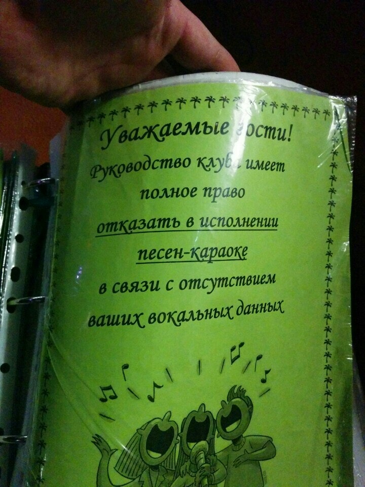 Караоке оставляет желать лучшего, обслуживание тоже. Сервировка столов наивно намекает, что вы пришли в ресторан.Но ночью, когда в микрофон орут пьяные гости бара, все об этом забывают